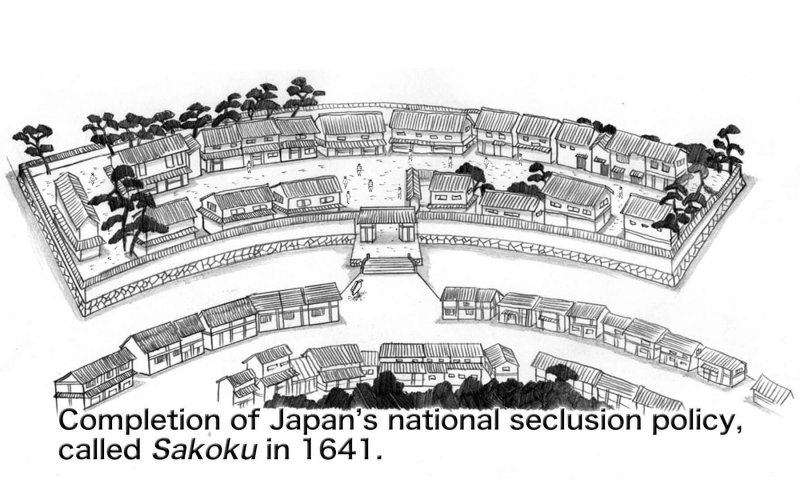 기리시탄이 일으킨 ‘시마바라・아마쿠사의 난’으로 그리스도교를 커다란 위협으로 간주한 에도막부는 1639년, 선교사가 밀입국을 꾀할 가능성이 있는 포르투갈 선박의 내항을 금하고 한 세기 가까이 유지해 온 포르투갈인과의 무역관계를 단절했다. 이른바 ‘쇄국’이라 불리는 해금정책(海禁政策)을 취하게 된 것이다. 이로써 유럽과의 교역은 선교사에 의한 선교활동의 우려가 없는 프로테스탄트(신교) 네덜란드로 국한되었으며 교역 창구도 히라도에서 나가사키의 ‘데지마’로 이전되었다.